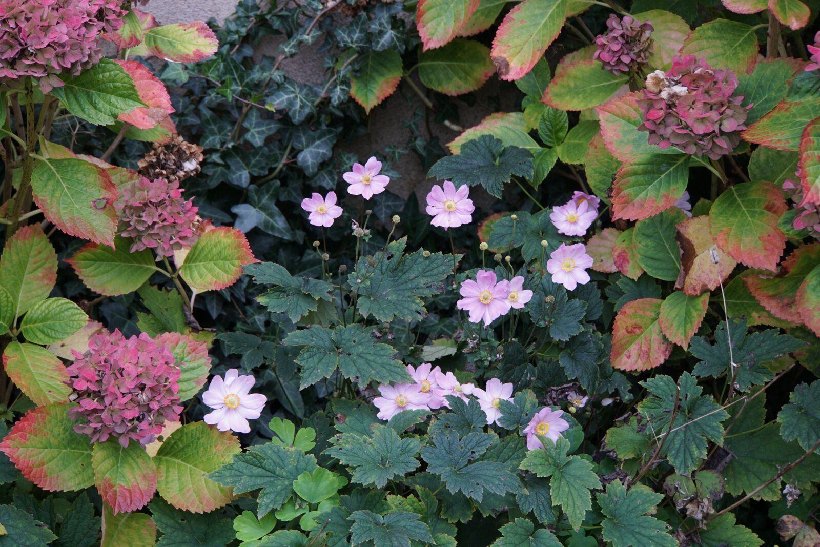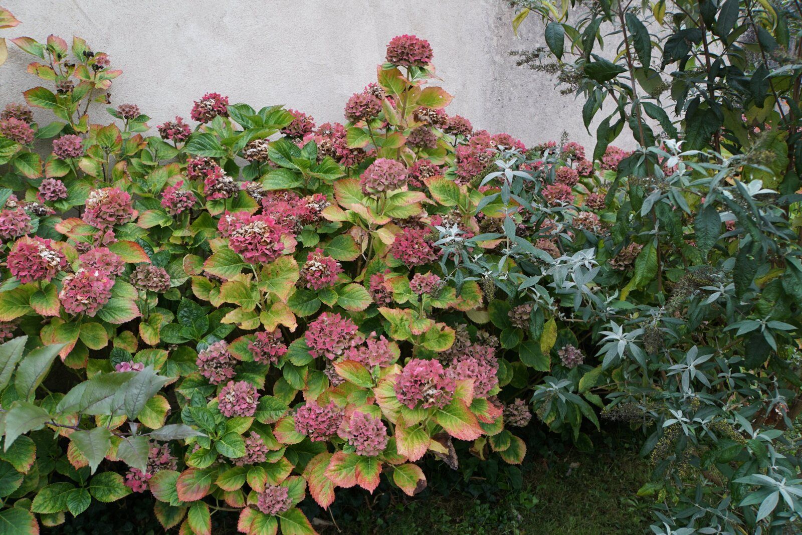 J'en profite pour vous montrer les beaux hortensias avant qu'ils ne prennent les couleurs brunes de l'hiver. C'est magnifique et c'est certainement ainsi que je les aime le plus.