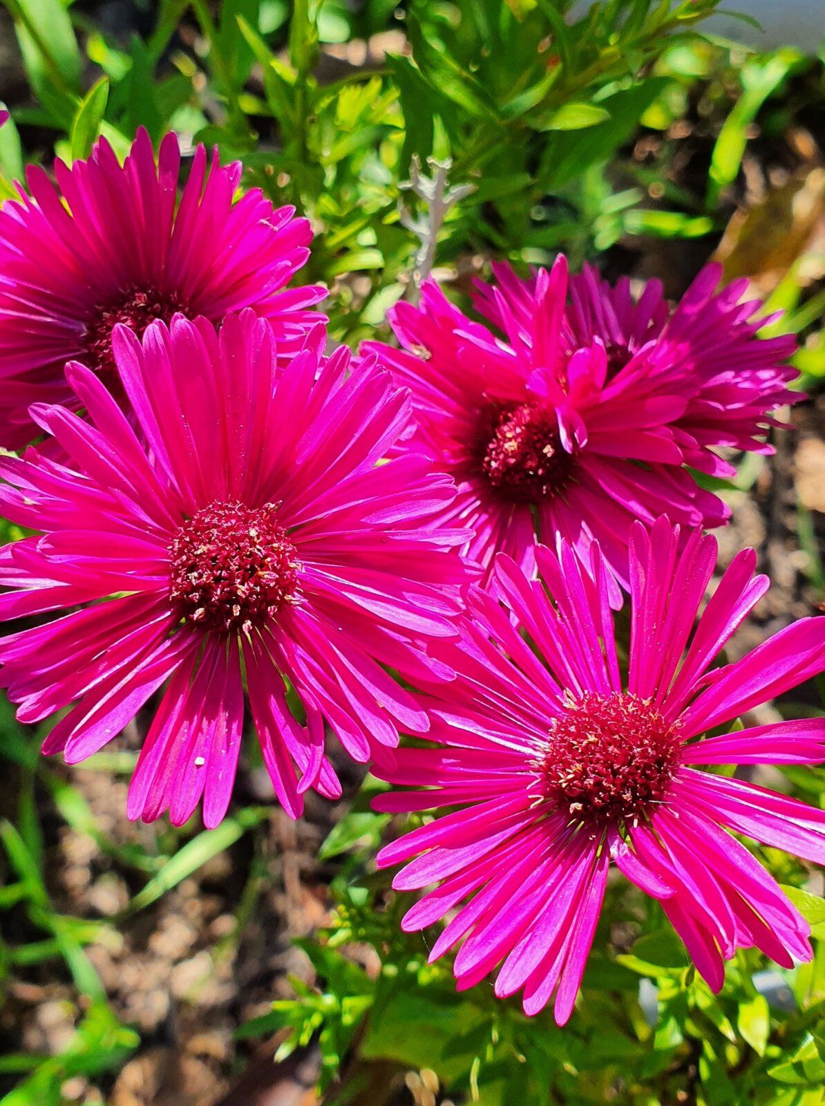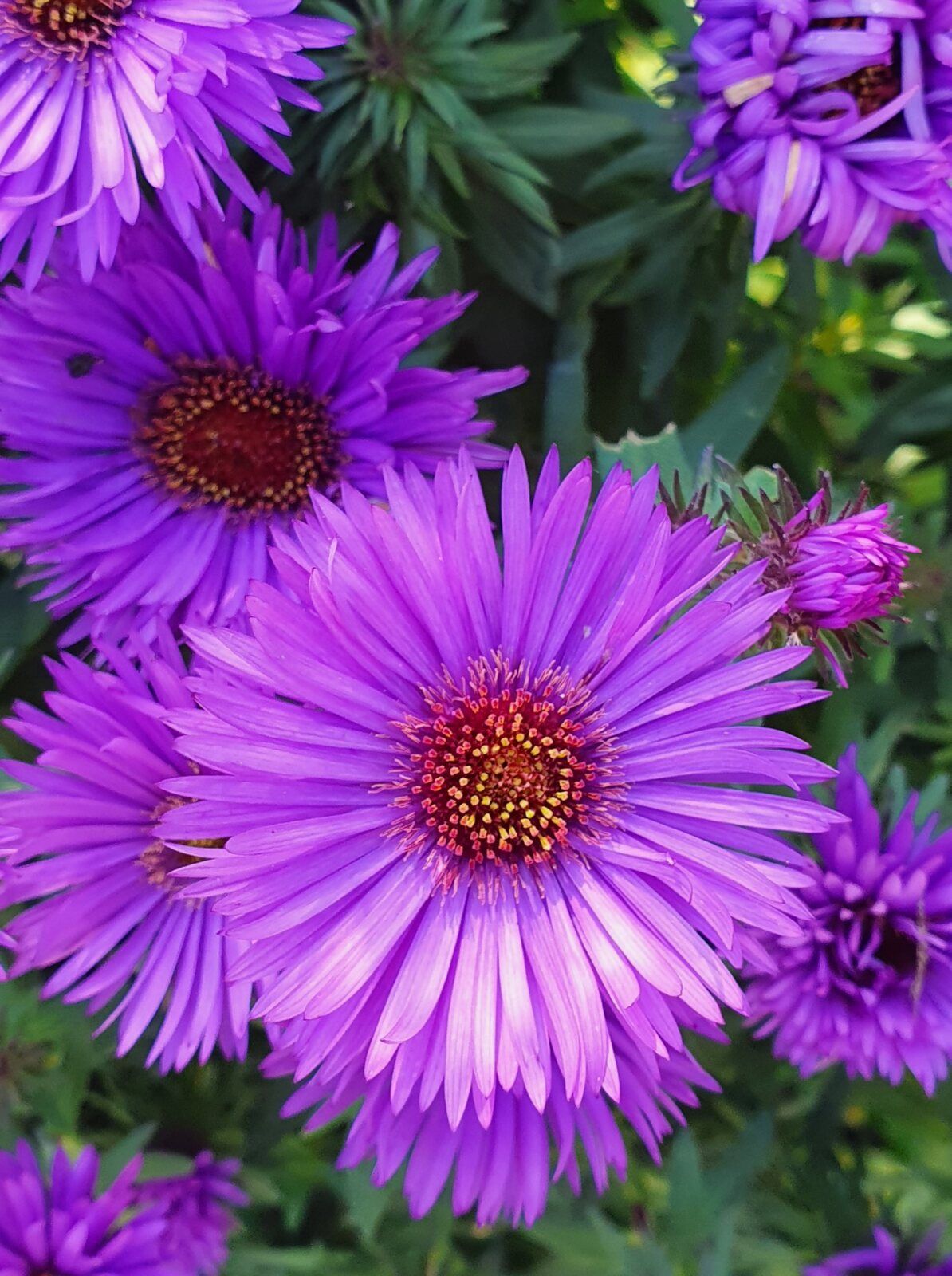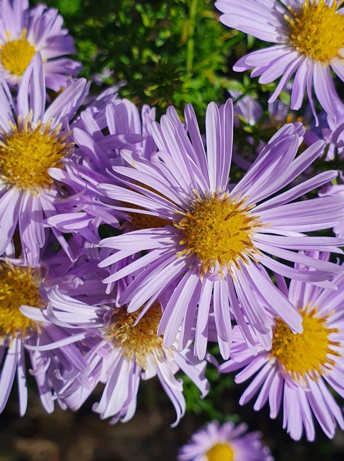 La plupart des asters sont déjà fanés. je leur ai tiré le portrait pour leur dire au revoir. Ne me demandez pas leur nom. J'ai pris très vite ces photos pour profiter de leur beauté dans un rayon de soleil.