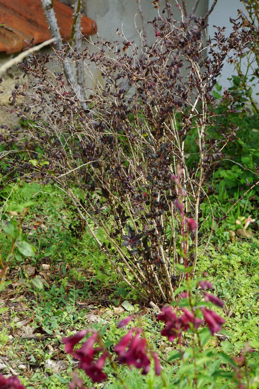 Derrière le Physocarpus Little Devil pousse lentement. Il a lui aussi supporté l'été.