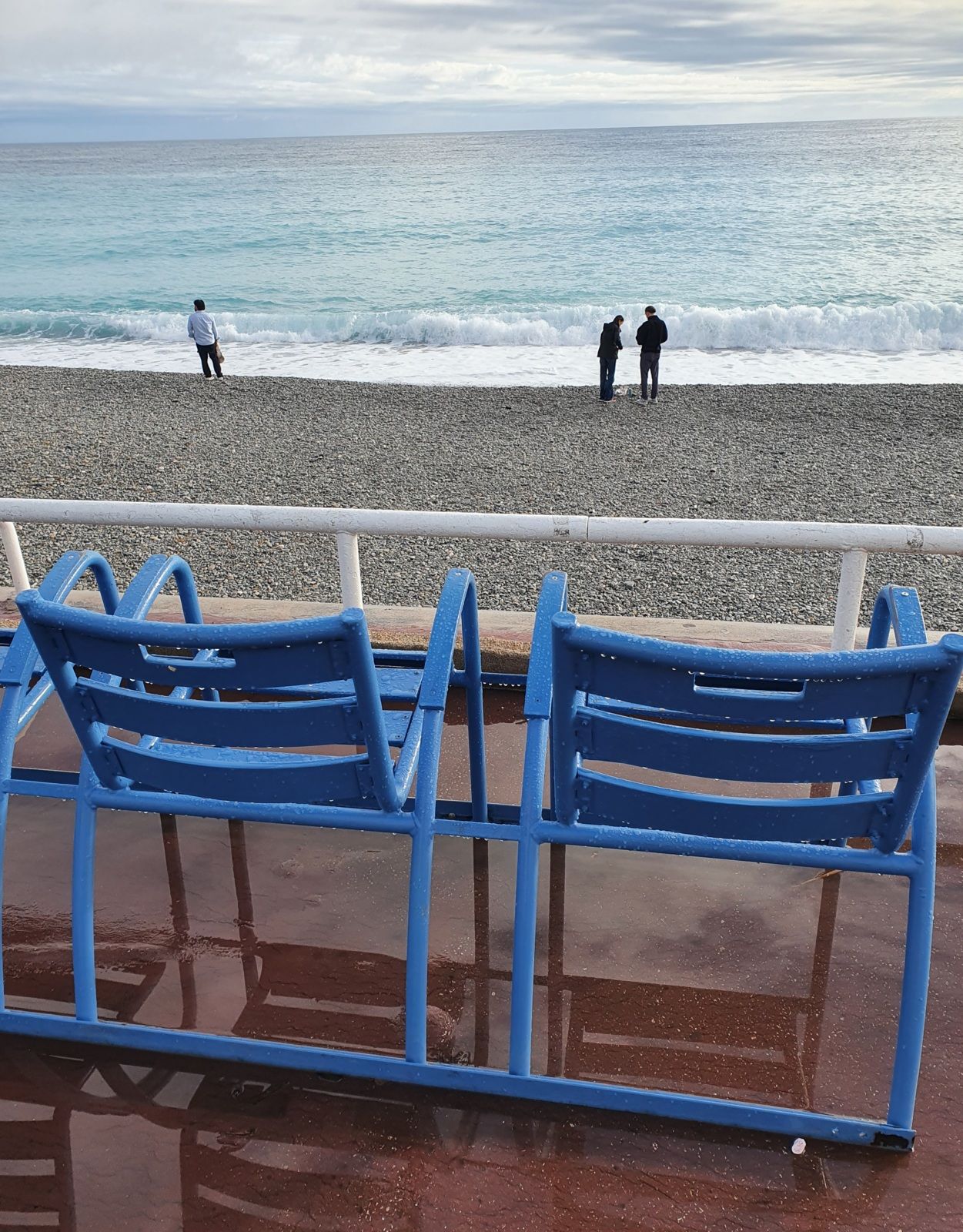 Nice, ses beaux hôtels, l'art nouveau, sa place Massena, ses boutiques, la promenade des anglais, la pluie, le soleil et la mer, Chirac et son pigeon.