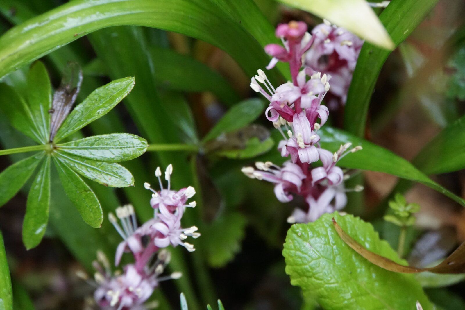 Cette ravissante vivace était cachée sous les feuilles mortes. Je l'ai dégagé pour pouvoir l'admirer. Mon joli muguet de Chine s'étale chaque année un peu plus pourtant à cet endroit la concurrence est rude. Il s'en moque. C'est un conquérant. Je laisse faire.