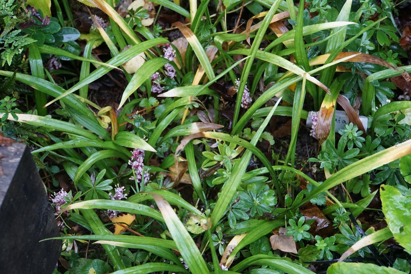 Cependant, j'ai pris soin de déplacer un peu mon ophiopogon. J'ai laissé l'aspérule odorante qui peut se déplacer toute seule.